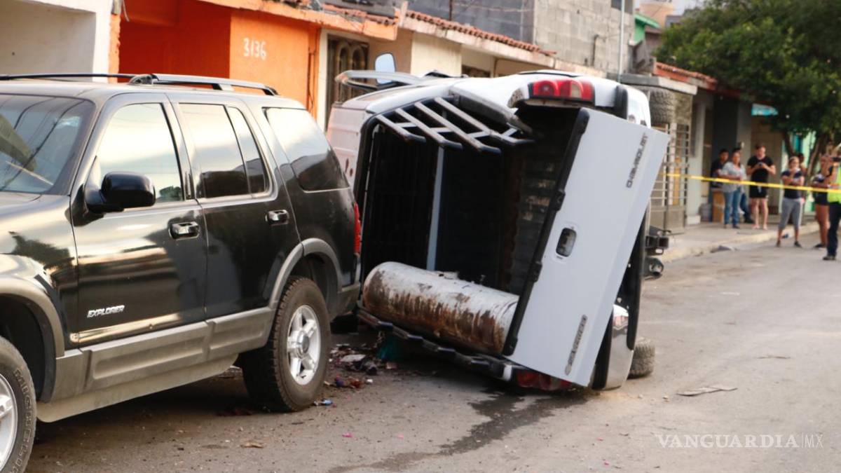 Vuelca camioneta y se impacta contra casa y vehículo, al poniente de Saltillo