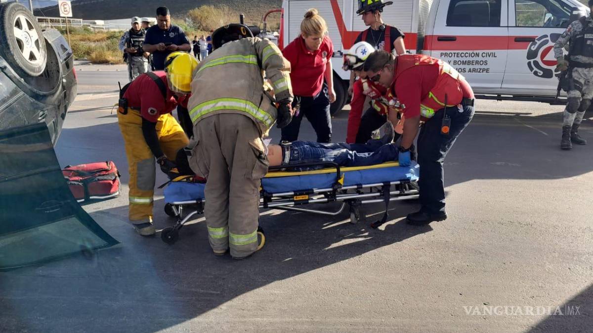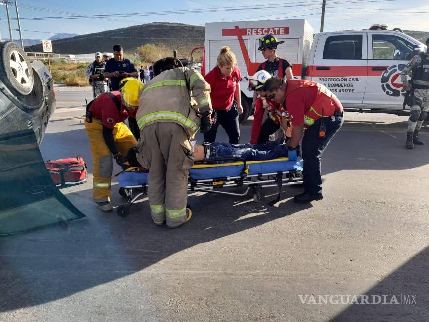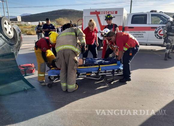 Vuelca conductor en la carretera a los Pinos, en Ramos Arizpe