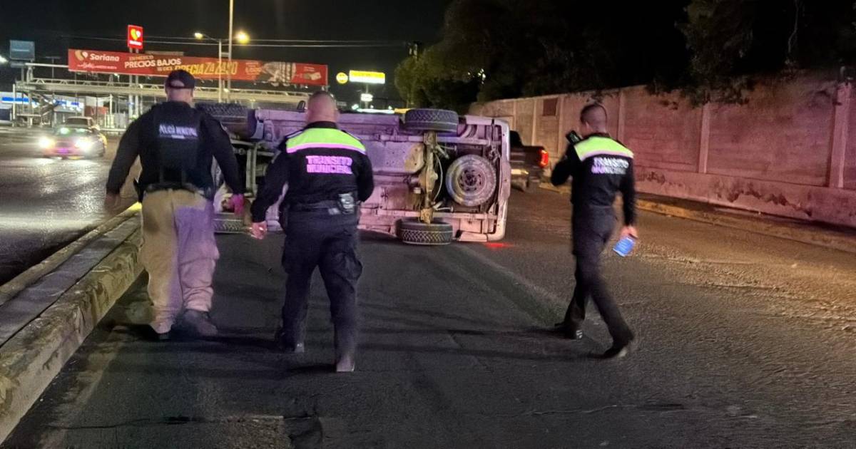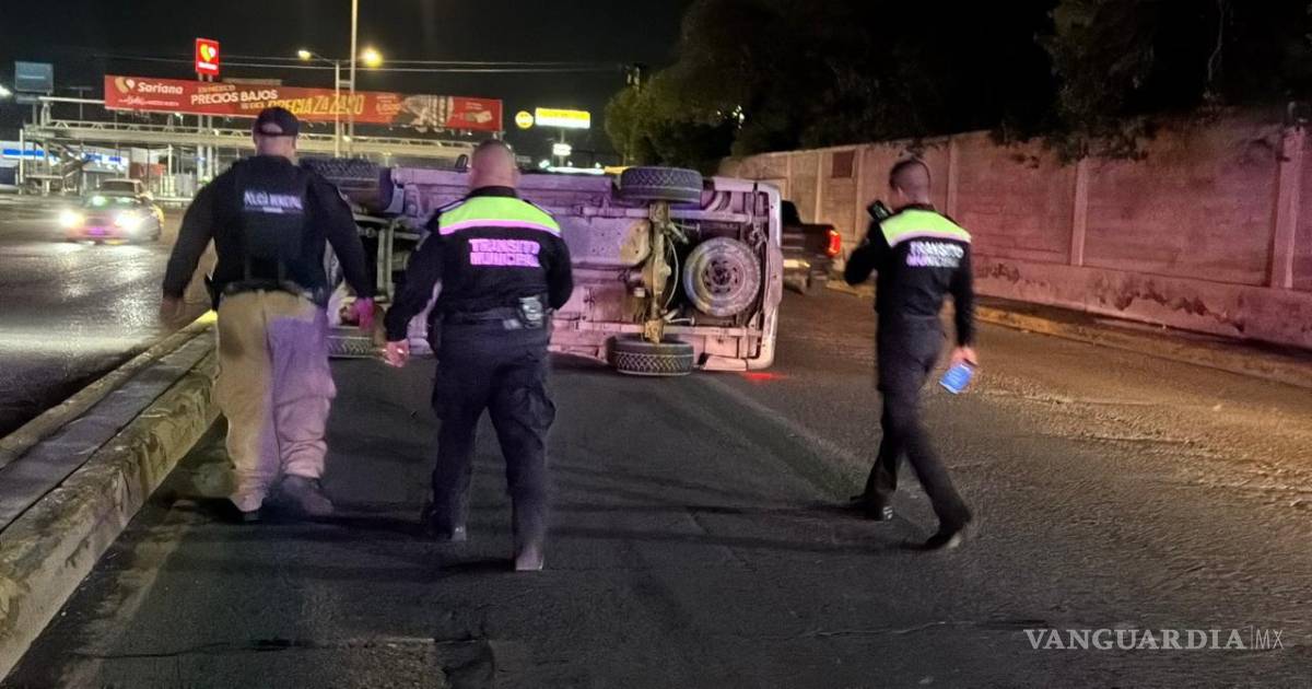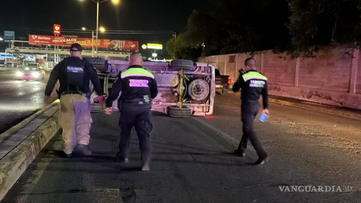 El conductor de una camioneta de la marca Ford terminó volcado tras impactarse contra el camellón central a la altura de la colonia Lomas de Lourdes, al sur de Saltillo.