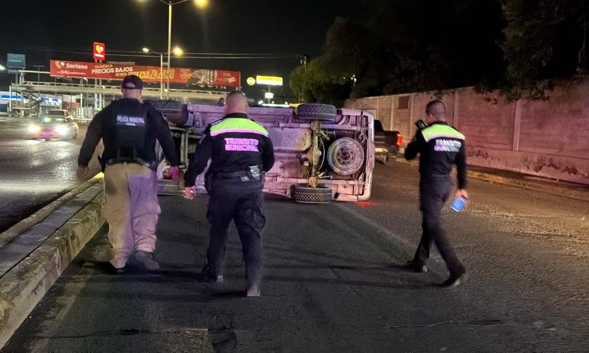 En la intersección con la avenida 7, presuntamente se impactó contra el camellón central, lo que ocasionó que la camioneta se volcara y quedara sobre su costado derecho. Afortunadamente, el conductor logró salir por su propia cuenta para posteriormente huir con rumbo desconocido.