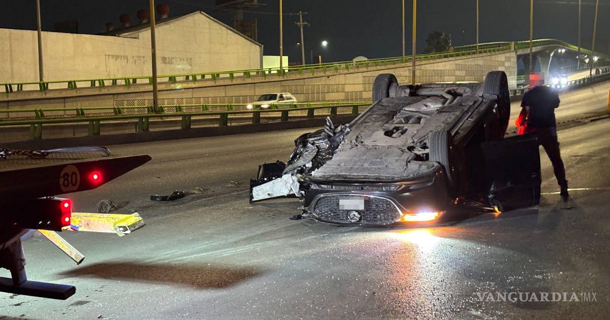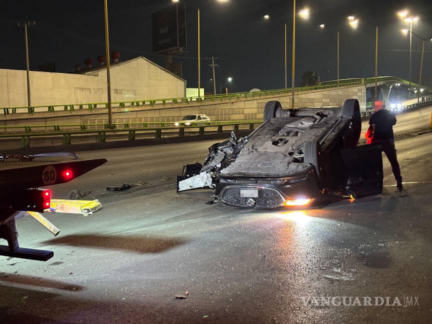 Vuelca conductor tras chocar contra puente en Saltillo; iba a exceso de velocidad