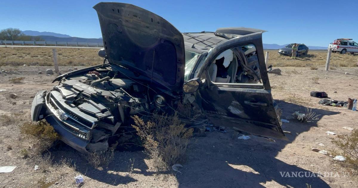 Vuelca familia canadiense en la Torreón-Saltillo; dos resultan lesionados