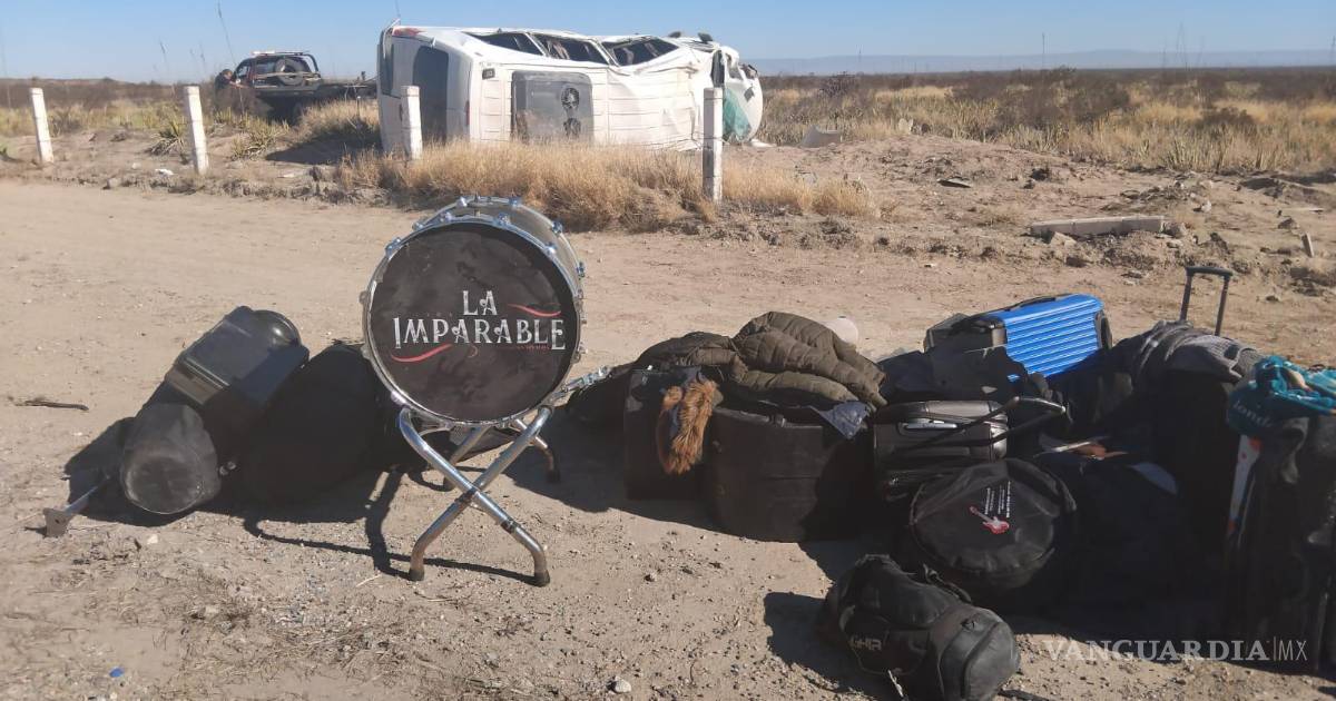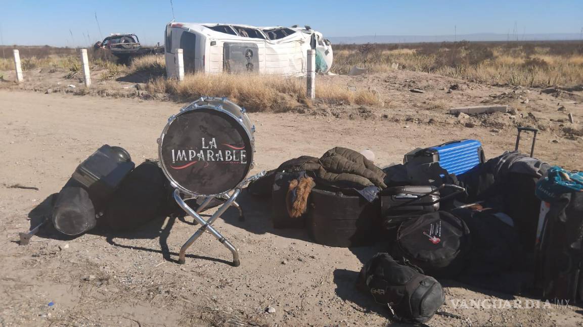 Vuelca grupo musical ‘Banda Imparable’ tras explotar un neumático en la Saltillo-Torreón