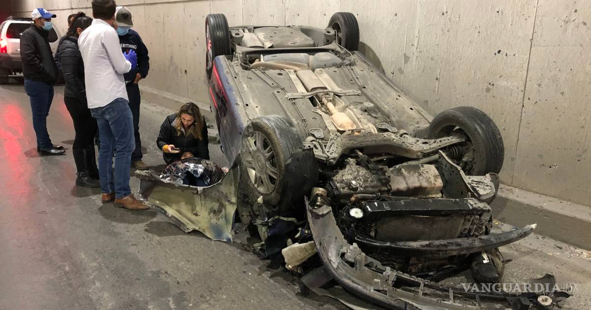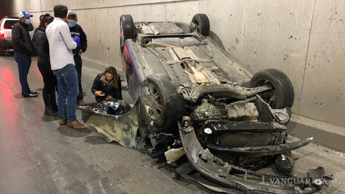Vuelca pareja por presunto ‘cerrón’ al sur de Saltillo