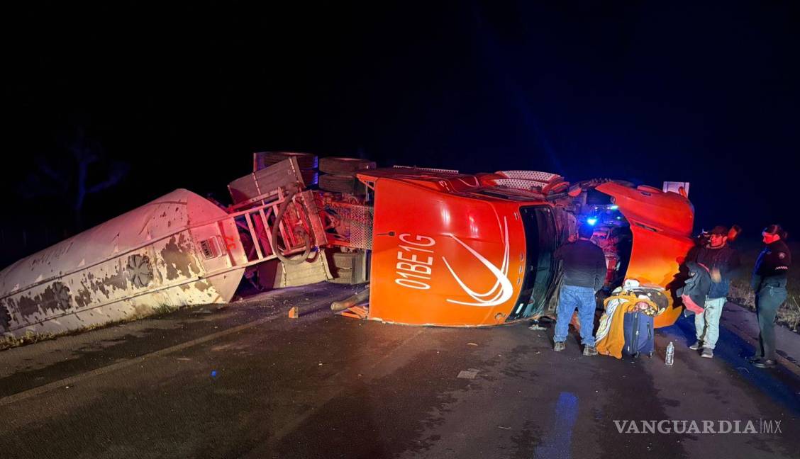 Vuelca tráiler al ser cegado por luces de otro automóvil en la carretera 57