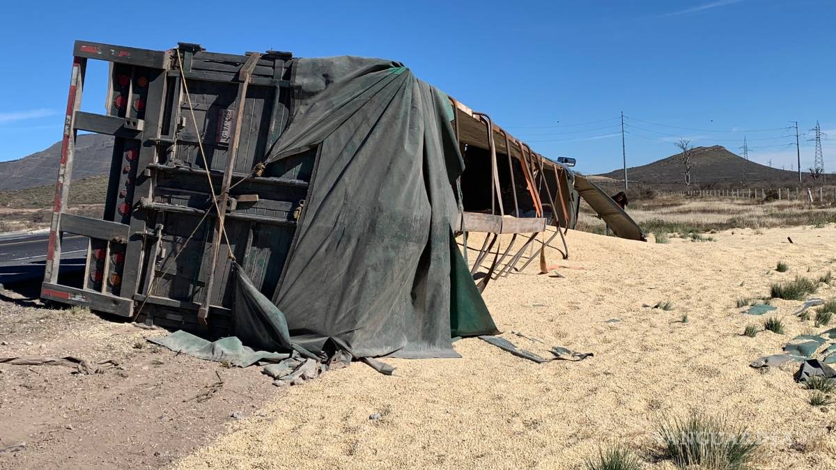 Vuelca tráiler cargado de maíz en libramiento