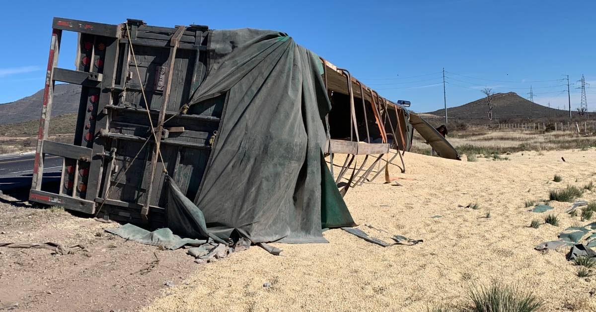 Se informó que al parecer dormitó el hombre debido a que llevaba varias horas manejando, por lo que se salió del camino y el tráiler que transportaba maíz quedó fuera del asfalto y volcado.