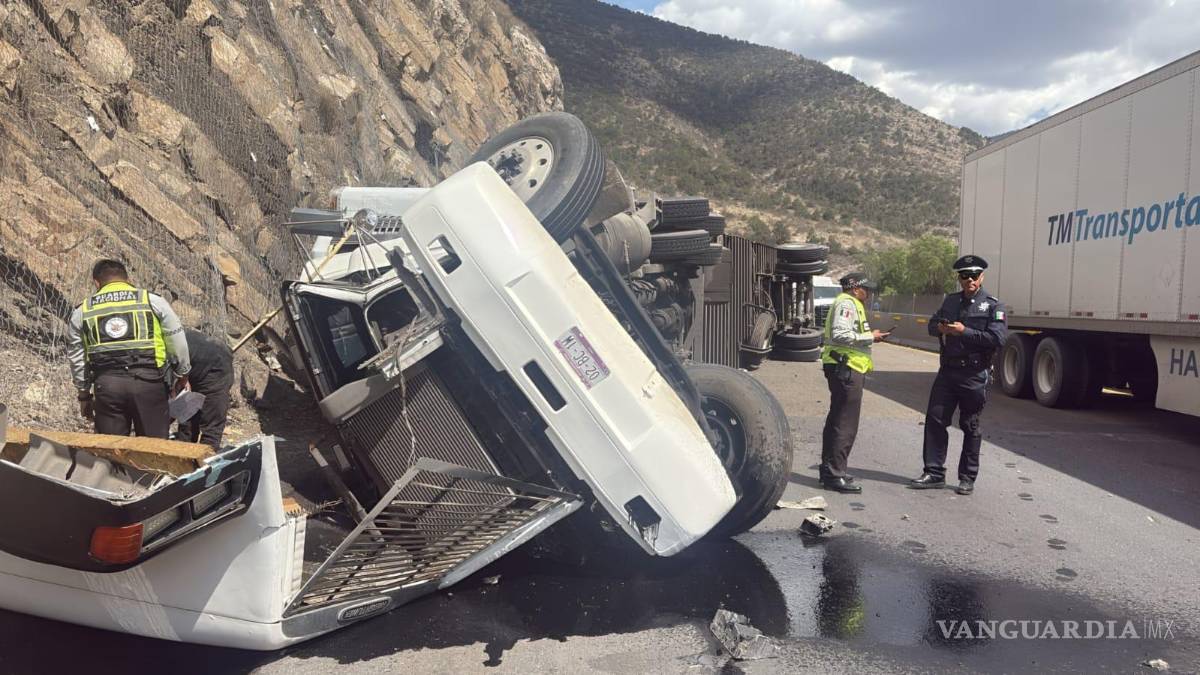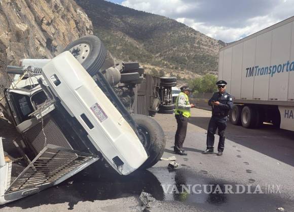 Vuelca tráiler en Los Chorros; vialidad se paraliza