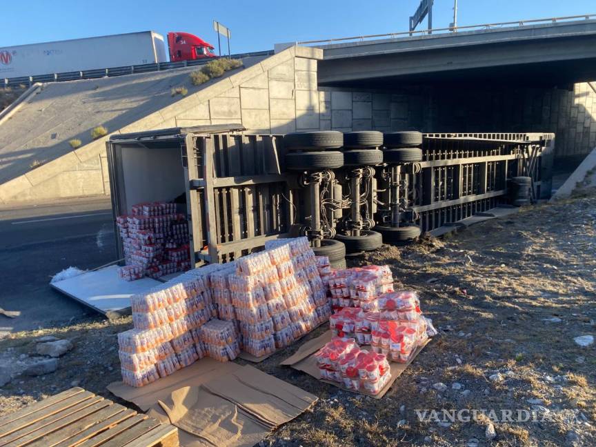Vuelca tráiler y desata caos vial en la Saltillo-Monterrey