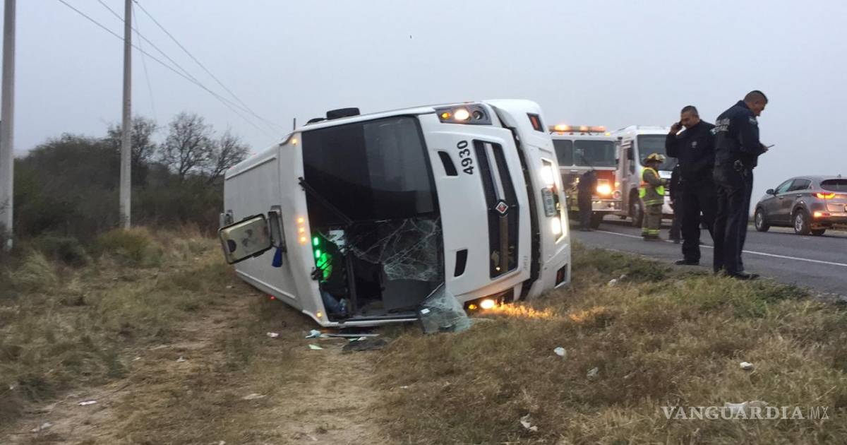 Vuelca transporte de personal en carretera Saltillo-Zacatecas; se reportan 11 heridos