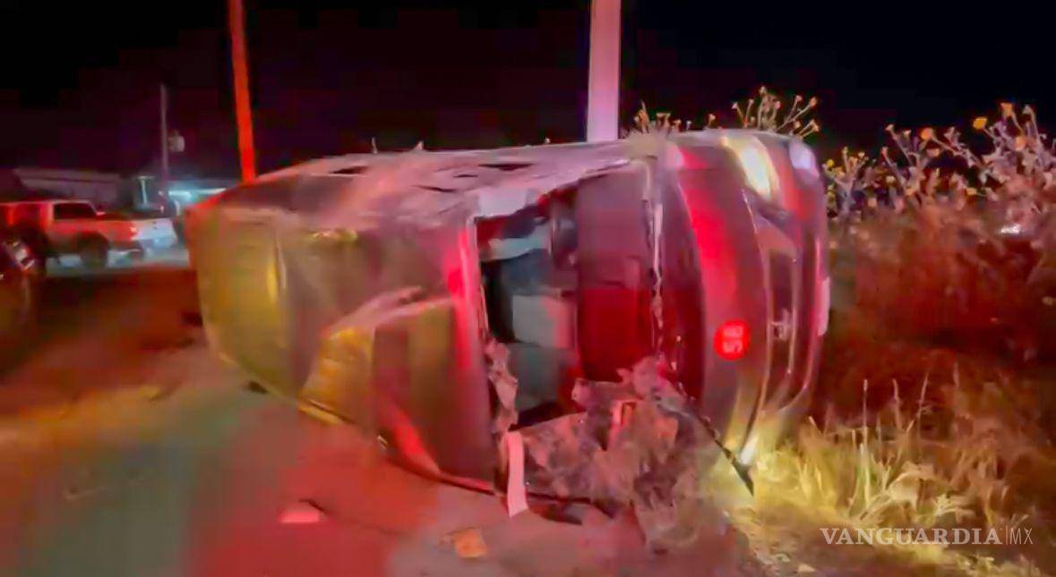 Un vehículo tipo vagoneta, utilizado como transporte de personal, terminó volcado luego de ser impactado por alcance por el conductor de un automóvil Nissan, sobre la carretera Zacatecas–Saltillo.
