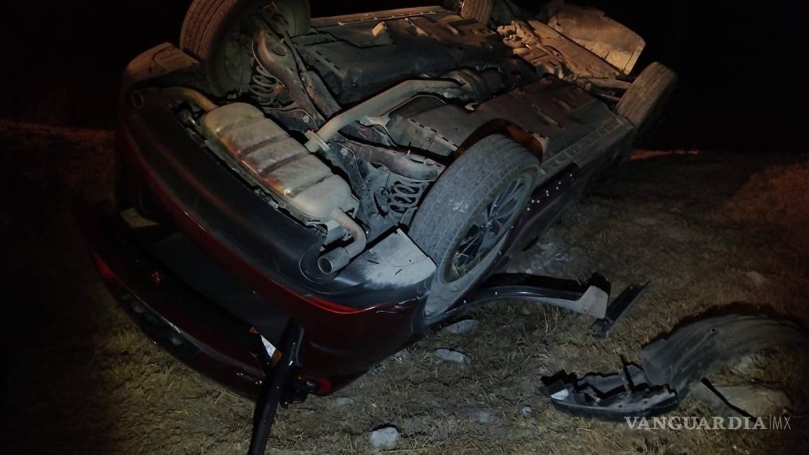 Vuelca tras intentar reincorporarse a la carretera Monterrey-Saltillo; dos lesionados