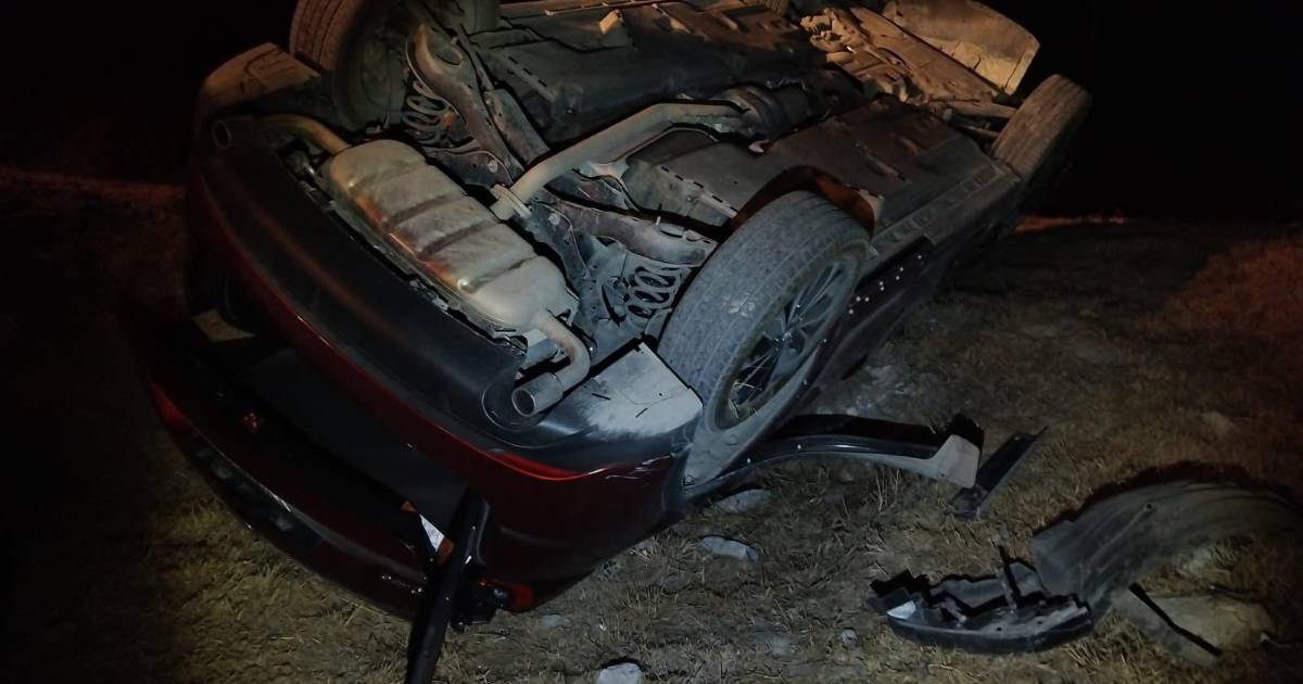 Una camioneta Mazda volcó en el kilómetro 25 de la carretera Monterrey-Saltillo, a la altura del ejido Cañón Colorado, luego de que su conductor perdiera el control al intentar incorporarse a la vía principal.