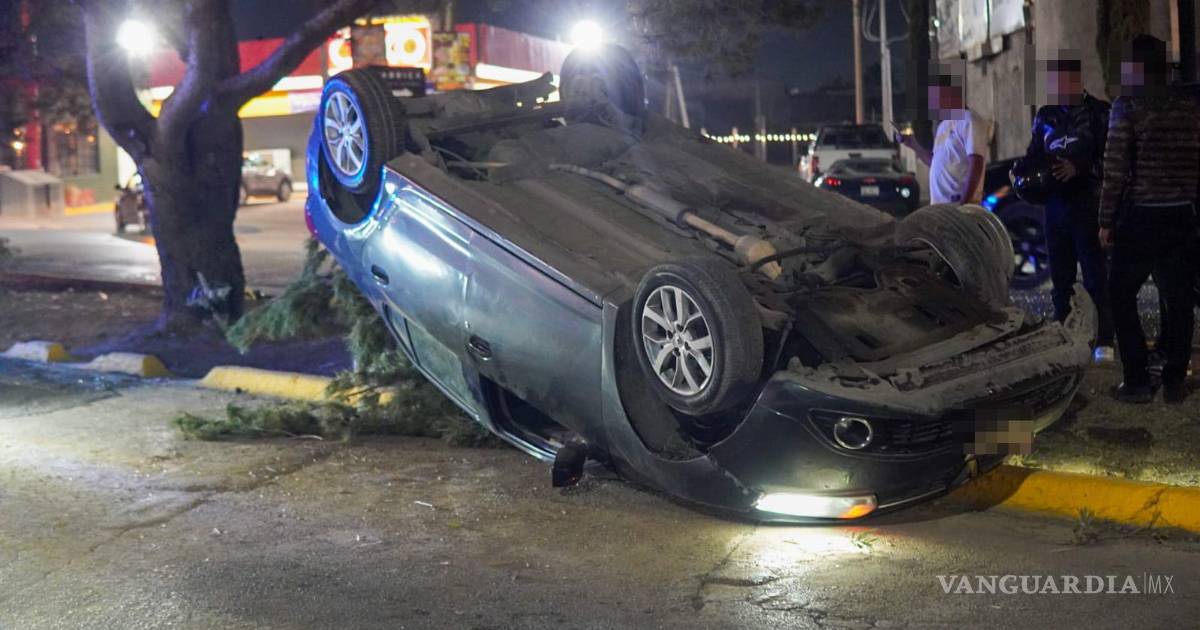 Vuelca tras ser embestido por alcance en Saltillo; el responsable intentó huir y fue capturado