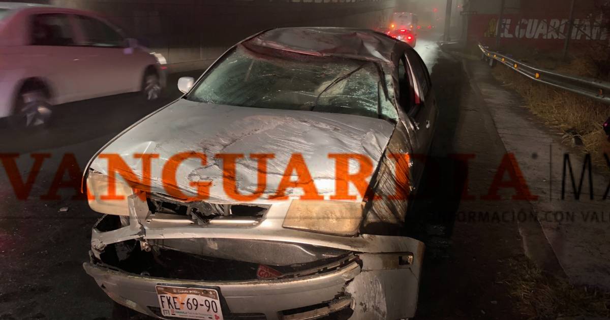 Fue cerca de las 8 de la noche de éste miércoles cuando se registró el aparatoso accidente, en el sentido de norte a sur frente a Valle Dorado en donde el vehículo Volkswagen Jetta en el que viajaban, terminó completamente destrozado y sólo se registraron daños materiales.