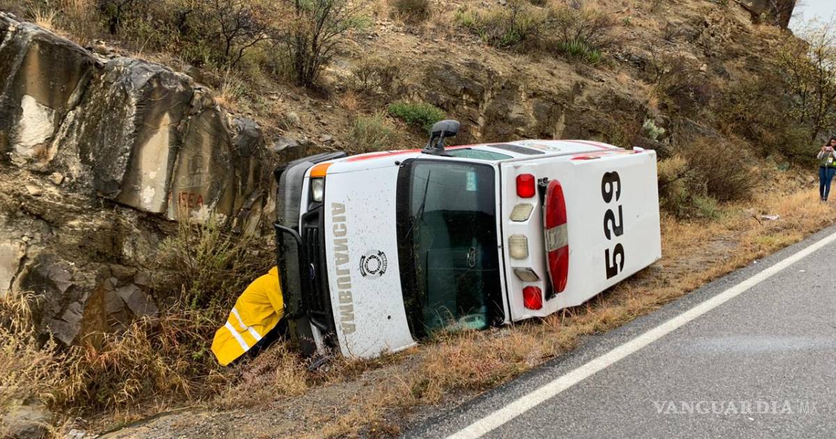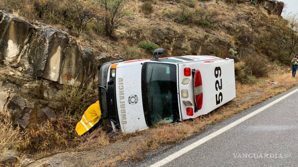 Vuelcan paramédicos de Ramos Arizpe; se dirigían a cubrir accidente