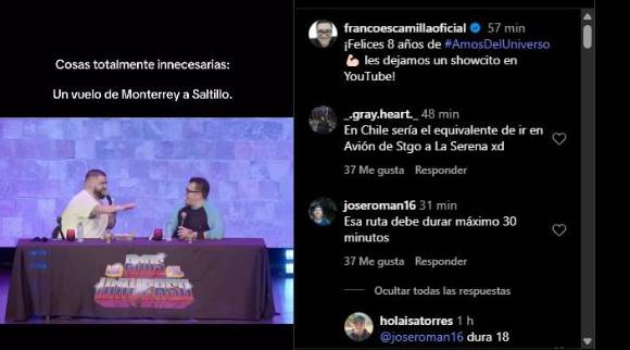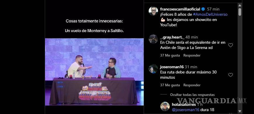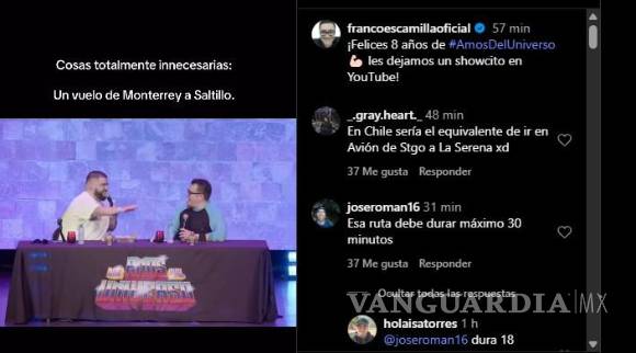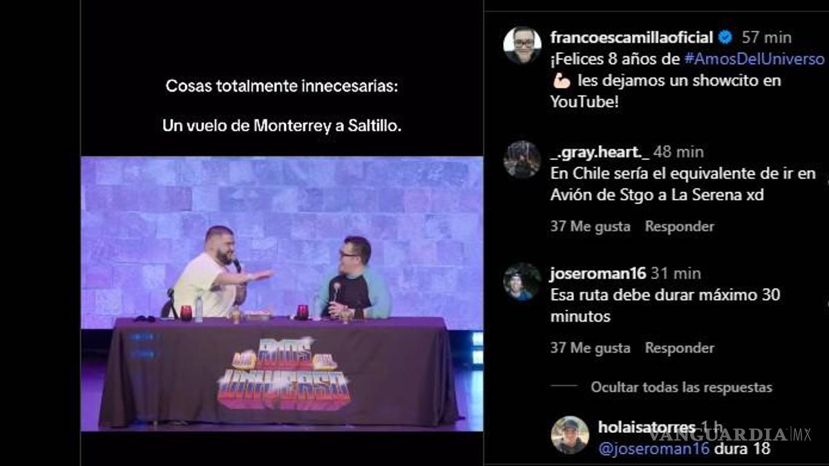 A través de sus redes sociales, Escamilla compartió un video en el que, junto a su compañero, ironiza sobre la necesidad de esta nueva conexión aérea. Con el título “Cosas totalmente innecesarias: un vuelo de Monterrey a Saltillo”, el standupero relató que el trayecto dura apenas 19 minutos, lo que provocó comentarios sarcásticos como el de La Mole: “Le voy a dar otra vuelta a la pista”.