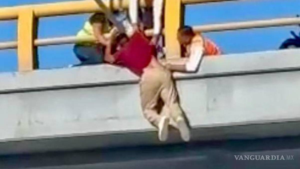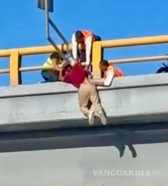 Salvan oficiales a hombre que intenta lanzarse de un puente en Torreón