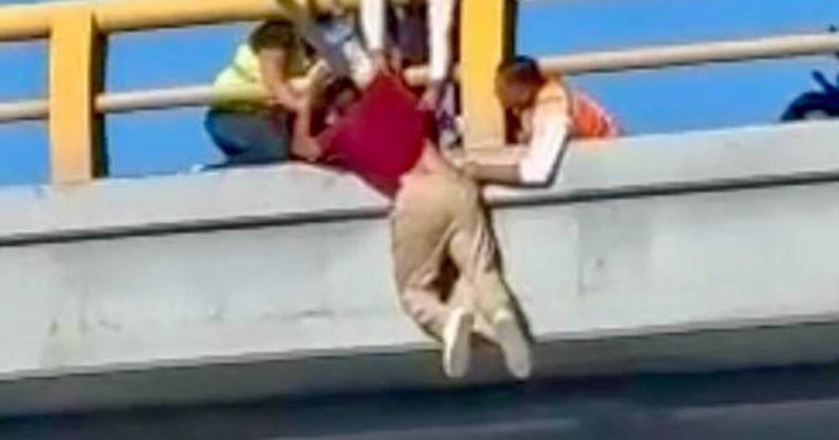 Al subir al puente para prestar apoyo con el abanderamiento vial, los elementos se percataron de que un ciudadano dialogaba con otro que estaba colgando del puente sujetándose con ambas manos. Decidieron entonces implementar el protocolo de actuación para este tipo de casos.