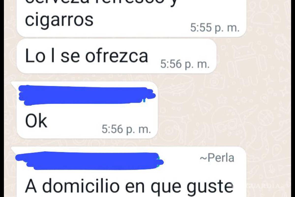 Saltillo, Coahuila.- Previo a que la nueva legislación que permite comercializar bebidas alcohólicas a domicilio entre en vigor, personal de una tienda de conveniencia ubicada al oriente de la ciudad, ya ofrece trasladar cigarros y cervezas a domicilios cercanos solicitando su pedido a través de WhatsApp.