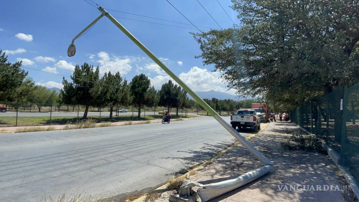 Un camión de la empresa distribuidora de agua Bonafon pasó por encima de una luminaria cuando el conductor se distrajo al recoger un papel que se le había caído, provocando así el accidente en Saltillo.