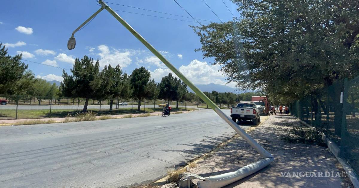 Se agacha para recoger unos papeles y camión repartidor de agua se estrella contra luminaria en Saltillo