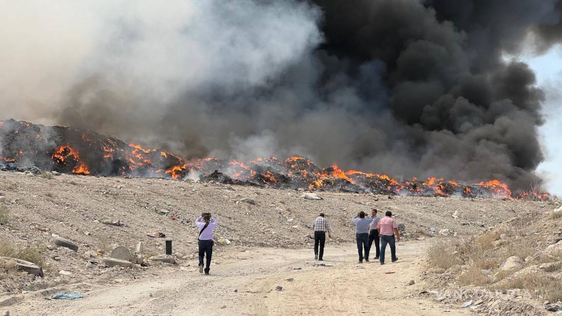 CIUDAD FRONTERA, COAH.- Ante el fuerte incendio que se registra en el Relleno Sanitario de Frontera, Coahuila, que se propaga en dos hectáreas actualmente, autoridades de Protección Civil anunciaron el cierre de este sitio, para evitar riesgos entre los trabajadores de recolección de basura.