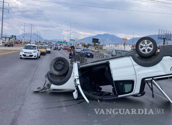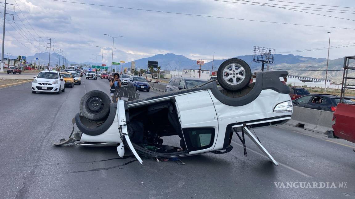 El incidente tuvo lugar en el bulevar Fundadores, al oriente de Saltillo, donde un conductor perdió el control de su camioneta, resultando en un vuelco tras impactar contra los muros de un puente vehicular.