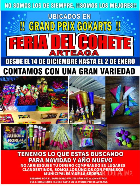 La instalación de la Feria del Cohete en Arteaga ya es un hecho y este año se ubicará en los terrenos de Grand Prix Gokarts que se localiza en el kilómetro 11.5 de la carretera antigua a Arteaga.