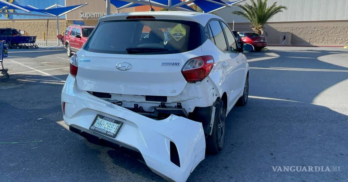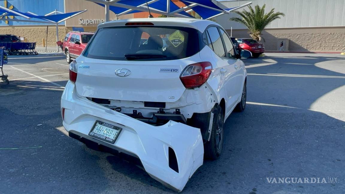 Se le atraviesa a repartidor y choca en estacionamiento de centro comercial en Saltillo