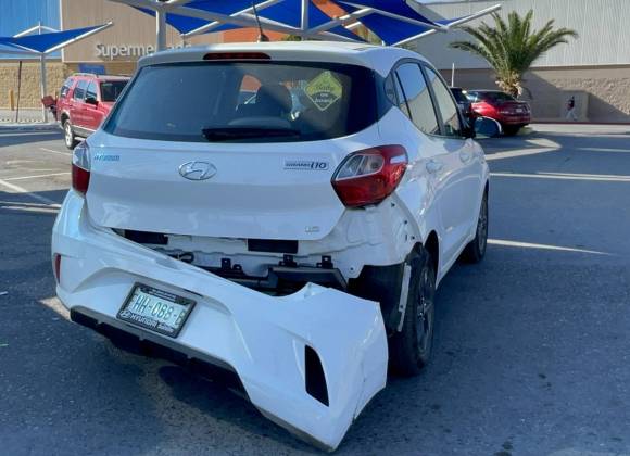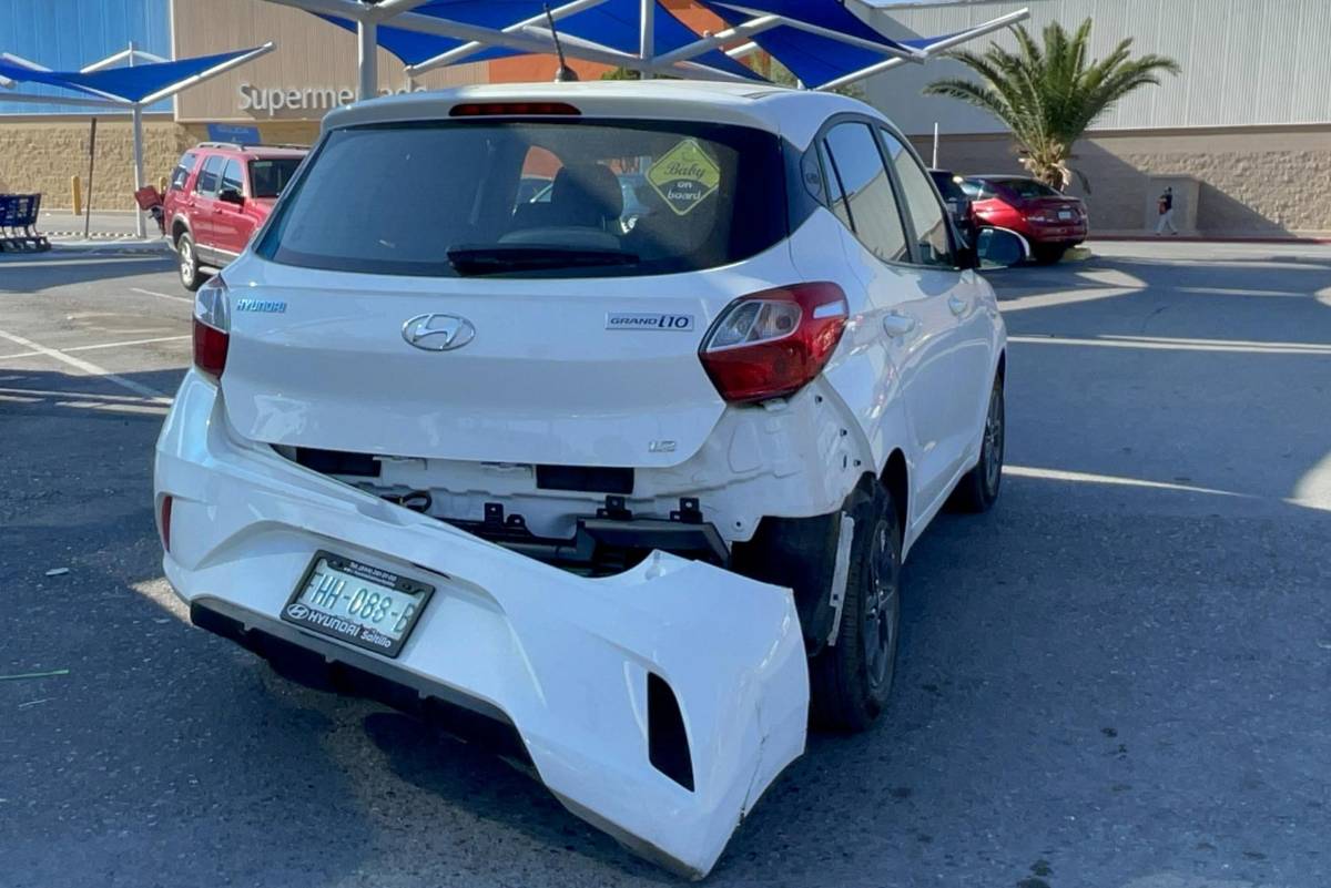 La moto golpeó la parte lateral trasera derecha del automóvil Hyundai i10, manejado por Emma de la Peña, de 38 años, lo que provocó que la defensa trasera del vehículo se desprendiera.