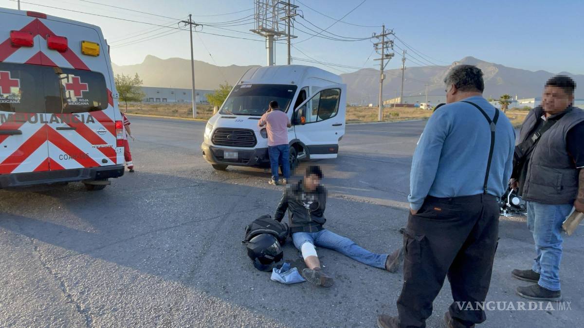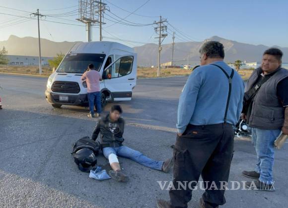 Se le atraviesa y lo derriba al sur de Saltillo; joven termina con posible fractura