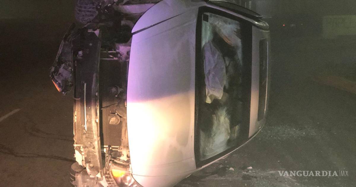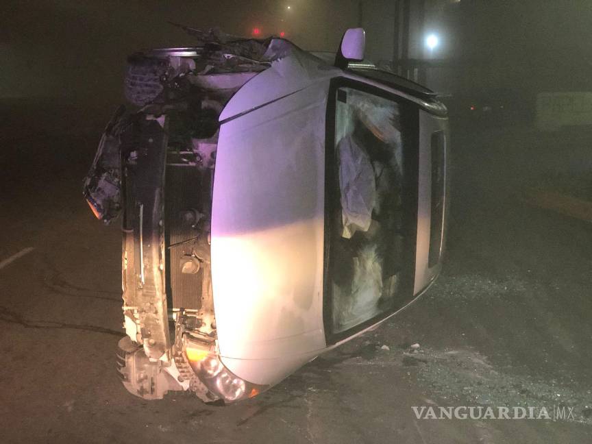 Se le ‘mueve’ el piso a ebrio conductor y termina volcado al oriente de Saltillo