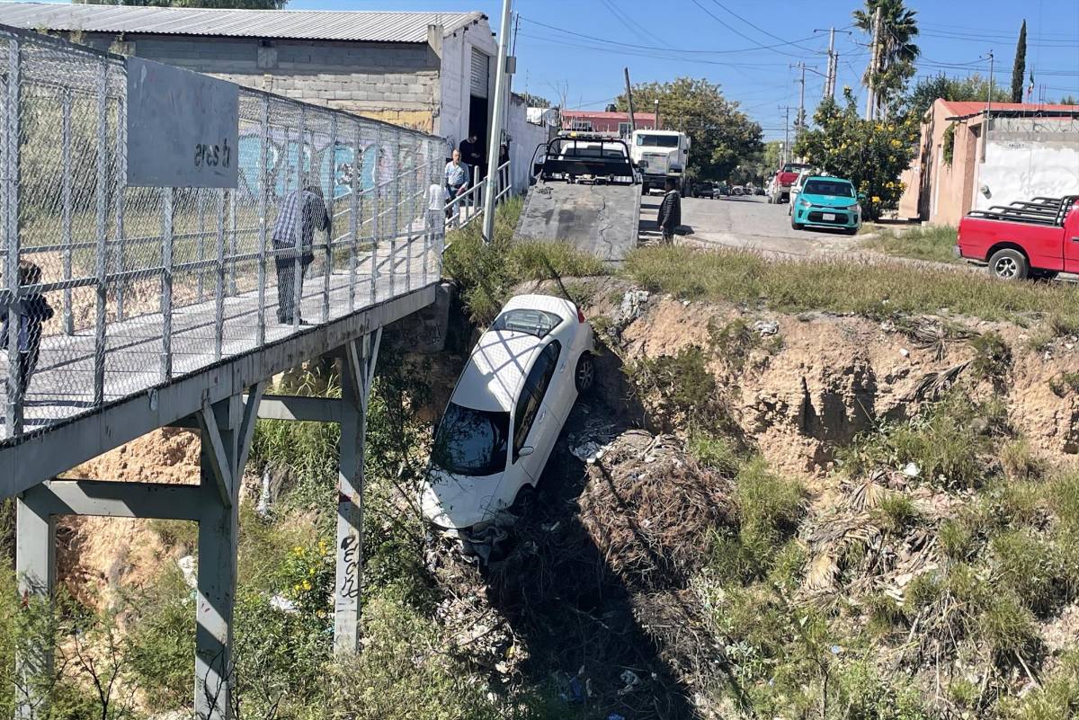 El puente peatonal no pudo sostenerlo y el auto sufrió pérdidas materiales que por él momento están sin cuantificar.