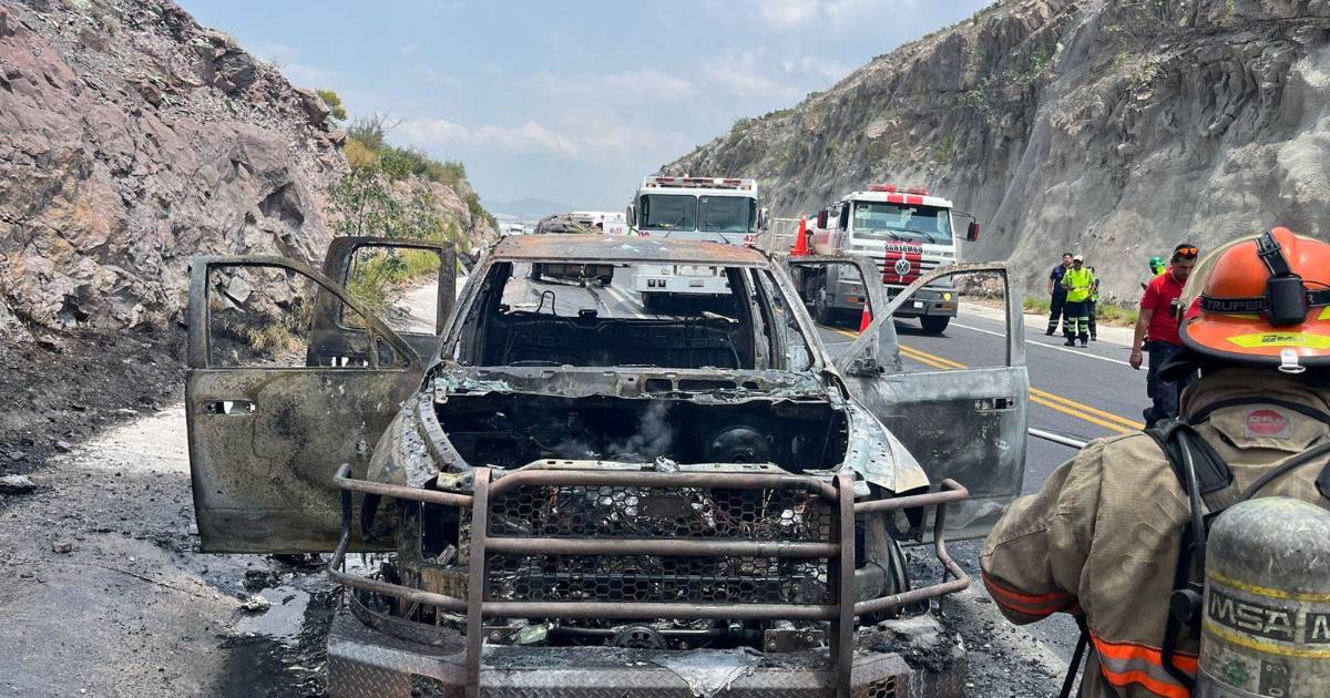 Un vehículo que era conducido por paisanos que se dirigían de Houston, Texas, a Jalisco, quedó reducido a cenizas tras un siniestro ocurrido en una cuesta sobre el kilómetro 31 del libramiento norponiente.