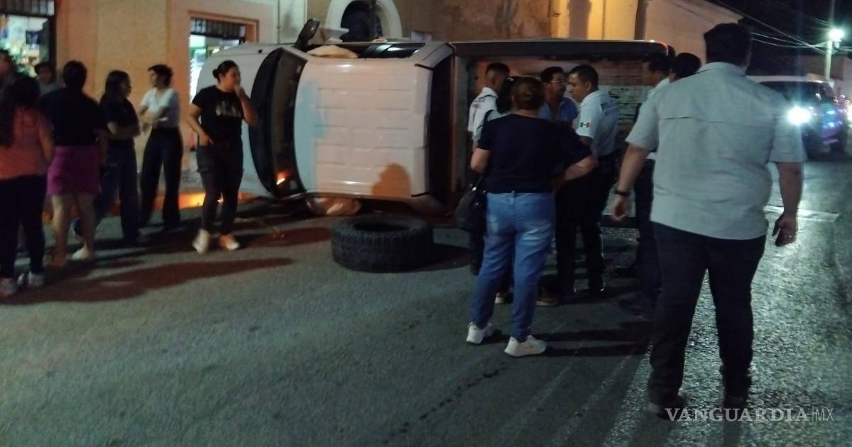 Se pasa conductora el alto y desata aparatosa volcadura en Parras (video)