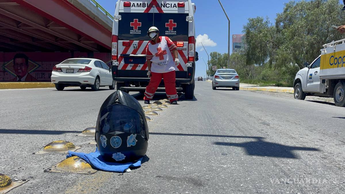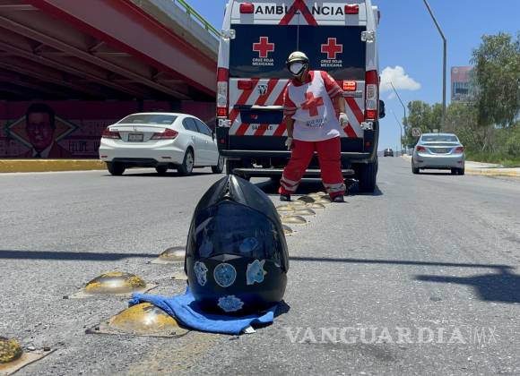 Se pasa el semáforo y motociclista se estampa contra su camión en Saltillo