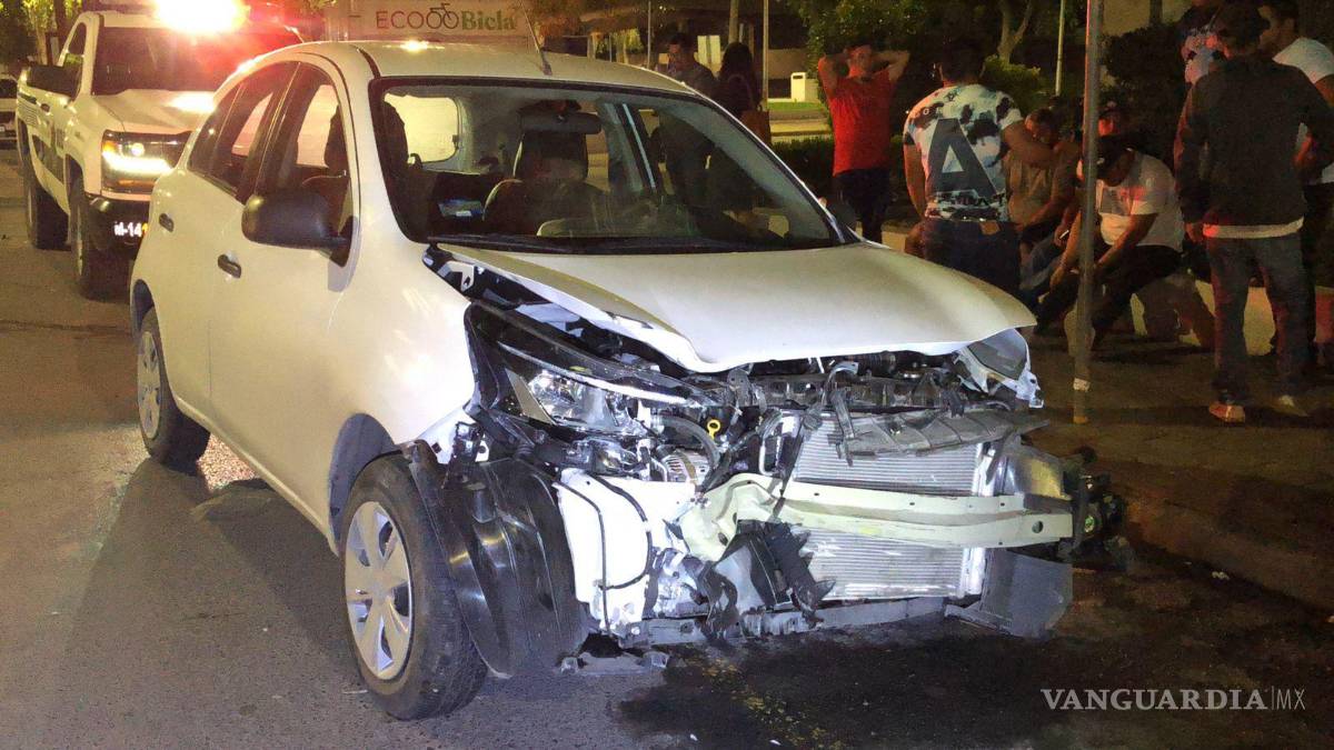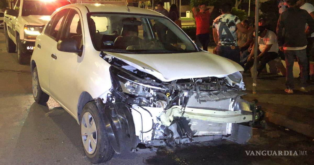 Se pasan semáforo en Zona Centro de Saltillo y provocan aparatosa colisión; alegan que tenían luz verde