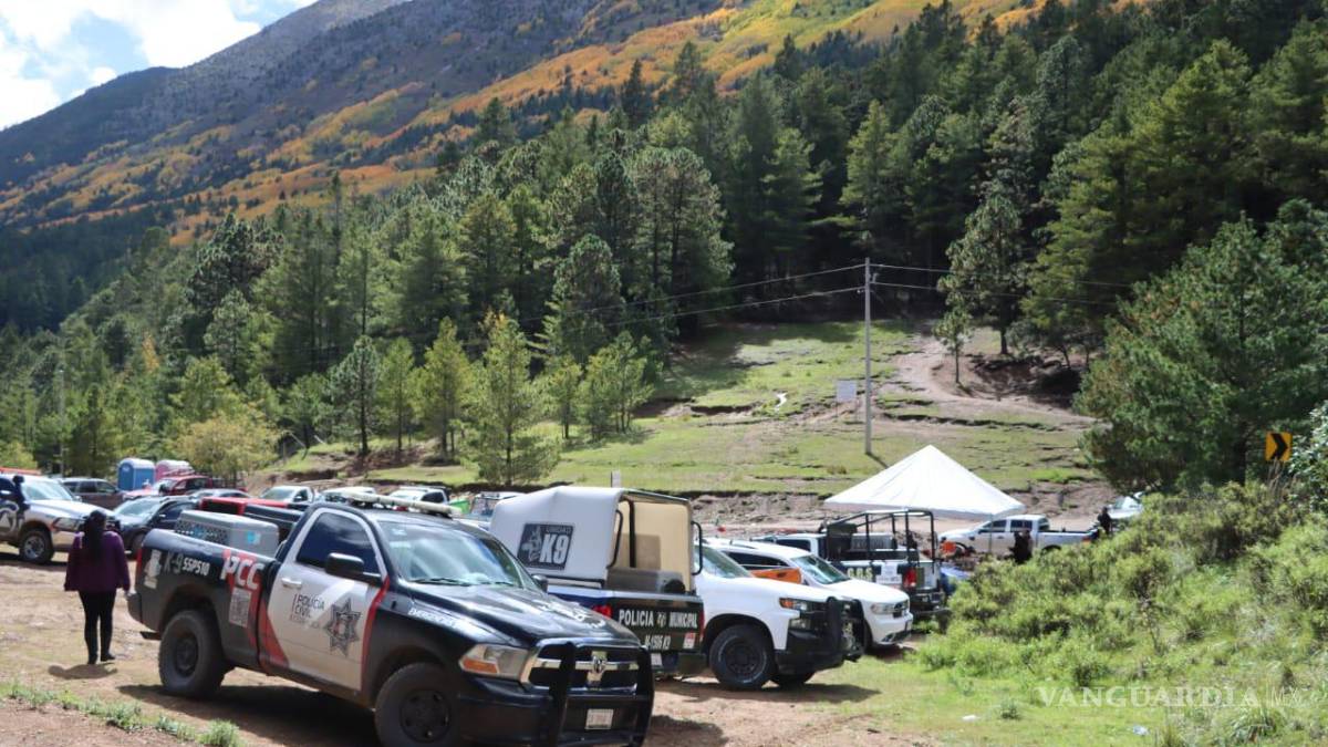 En los trabajos de rescate participan 98 elementos de la Policía Municipal y Montada de Saltillo, Sedena, Protección Civil y Bomberos de Arteaga, además de ocho grupos de senderistas