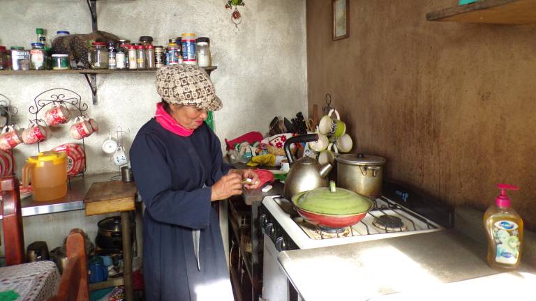 “Cuando llegué vi que había barro y empecé a hacer ollitas, todas chuequitas, y las metía en una hornilla de piedra, ahí que se hicieran duras, y luego en las fiestas las empecé a vender y me las compraba la gente, yo creo que por ayudarme. Cuando llega Tere, Tere era muy artesana, ya nos hacían pedidos de platitos, de candelabros, tacitas, macetitas, porque se pintaban y se les ponían mensajes de Dios que sacábamos de la Biblia”.