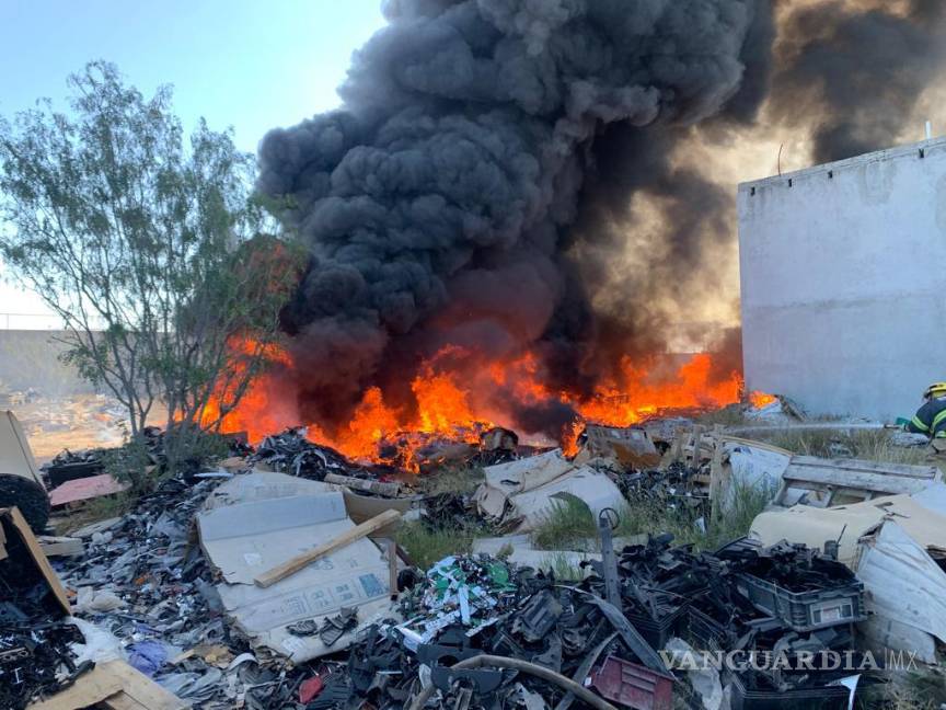 Sufre fuerte incendio bodega clandestina de plásticos en Frontera