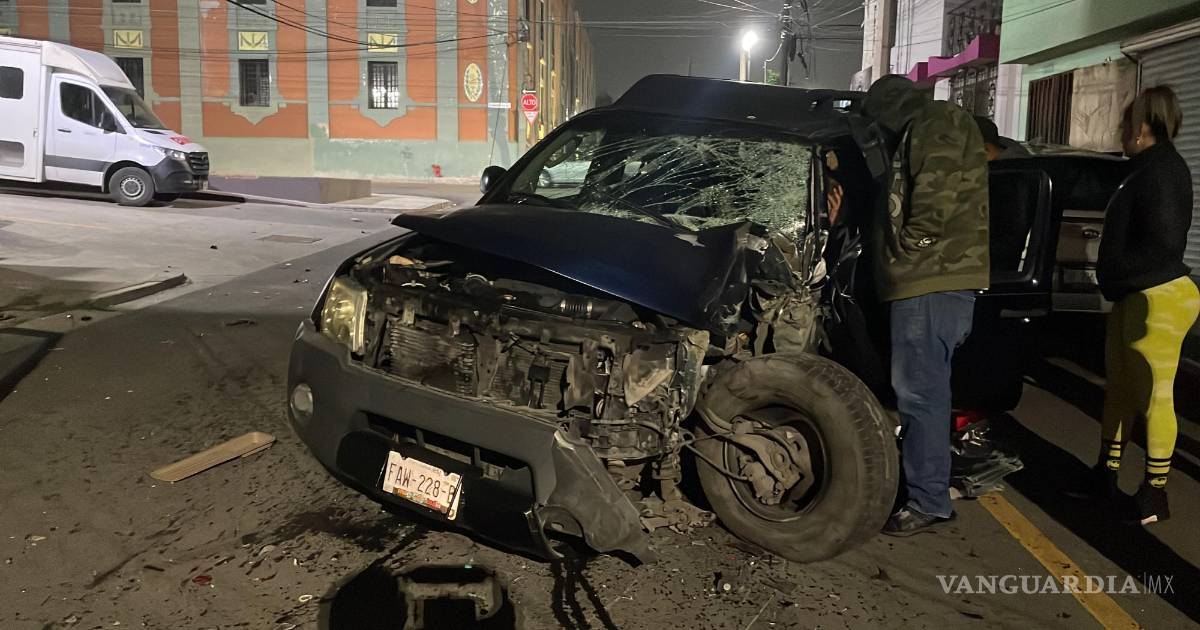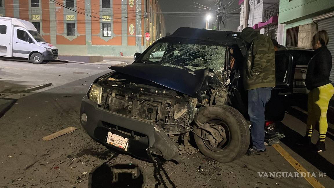 Sujeto en presunto estado de ebriedad destroza su camioneta y termina lesionado, en el Centro de Saltillo