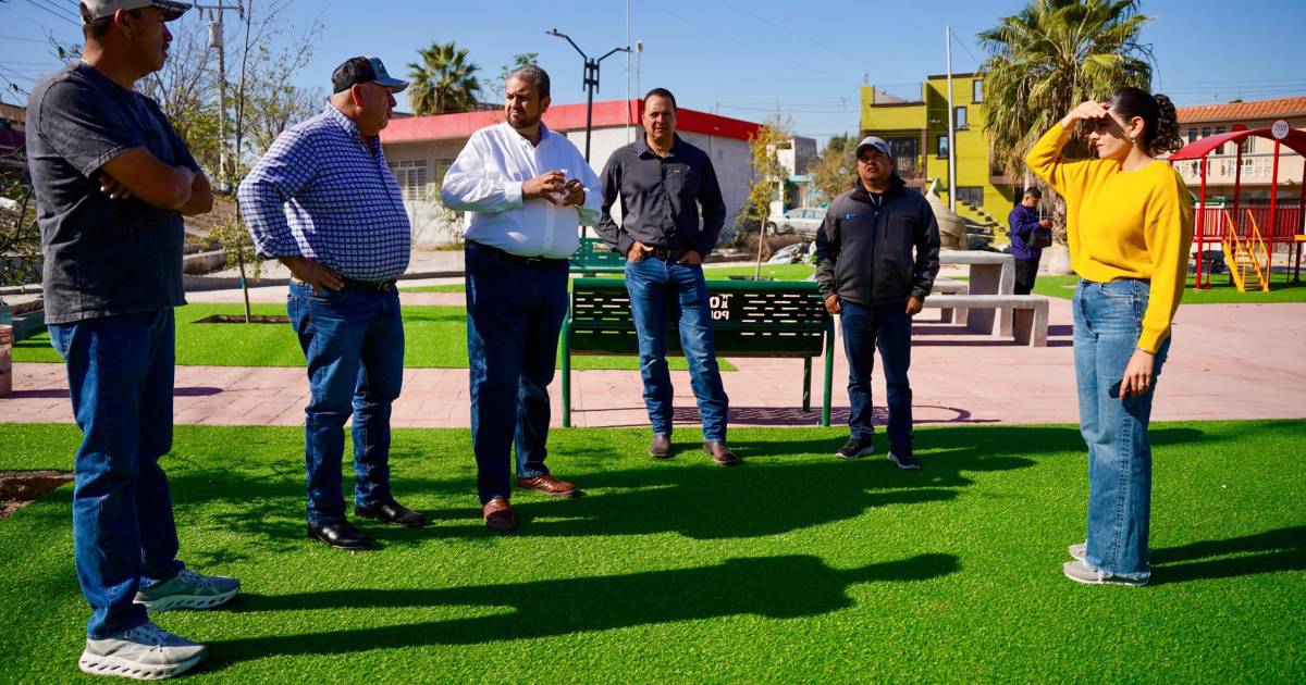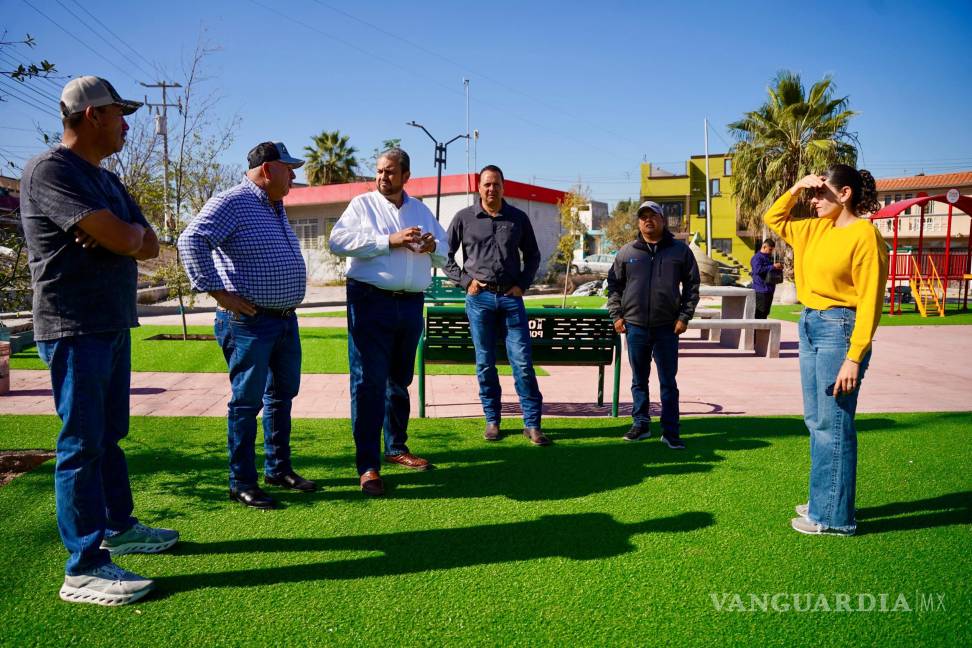 Durante la visita se verificó que el espacio ya cuenta con juegos infantiles instalados, pasto sintético, mobiliario urbano, banquetas concluidas, mesas y bancas de concreto, así como alumbrado público en funcionamiento. Además, se llevan a cabo los últimos trabajos de limpieza, acabados y adecuación de áreas verdes.