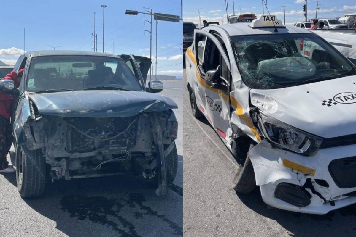 Un taxista y su amigo por poco terminan prensados en un accidente automovilístico, en el cruce de los bulevares Antonio Cárdenas y Emilio Arizpe de la Maza de Saltillo.