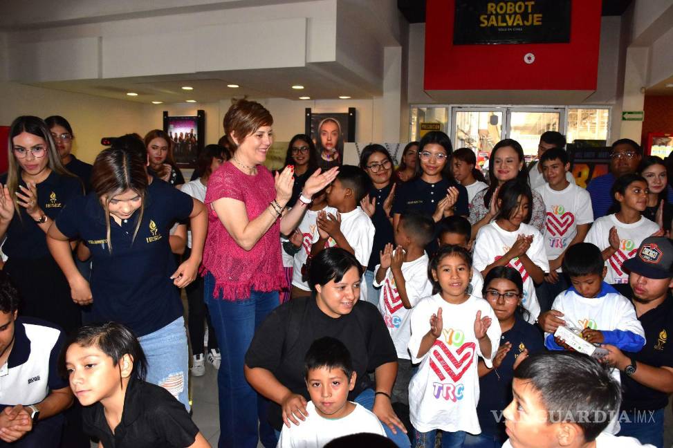 TORREÓN, COAH.- En conmemoración del Día Mundial contra el Trabajo Infantil, que se celebra cada 12 de junio, 60 menores integrantes de la Casa Puente del Sistema para el Desarrollo Integral de la Familia (DIF) Torreón, disfrutaron de una función de cine en las instalaciones de Cinemex, acompañados por la señora Selina Bremer, presidenta honoraria del organismo.