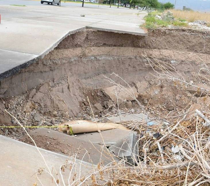 La falla se produjo presuntamente por la formación de un socavón, donde hay descargas irregulares de agua pluvial de colonias del norte de Torreón y por donde diariamente pasan camiones de volteo a tirar escombro al lecho seco del río