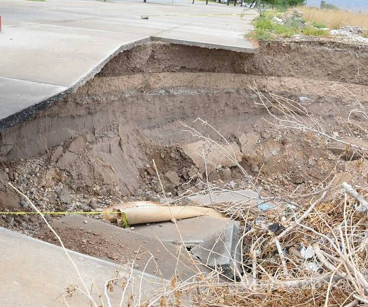 Torreón, Coahuila.- Parte de la banqueta del Metroparque Río Nazas a la altura de la colonia Rovirosa Wade colapsó y a pesar de que es una estructura de tres metros de ancho que se utiliza como andador en la margen derecha del río Nazas, Protección Civil solo colocó una cinta amarilla.