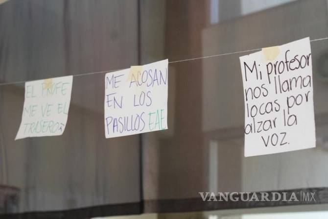TORREÓN, COAH.- Colectivos feministas de La Laguna, montaron un “tendedero de la vergüenza” en la Plaza Mayor de Torreón, donde se hacen denuncias de agresiones sexuales sufridas por mujeres de La Laguna.