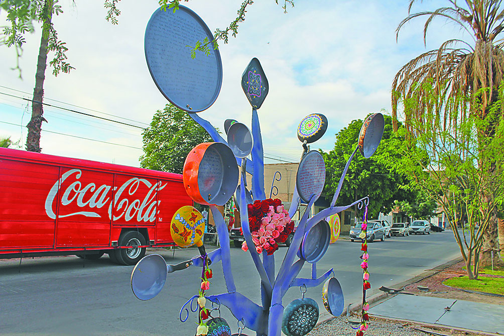 El Ayuntamiento colocó dos árboles de metal con 32 sartenes y ollas pintadas que tenían un testimonio de usuarias del IMM que han sufrido violencia.