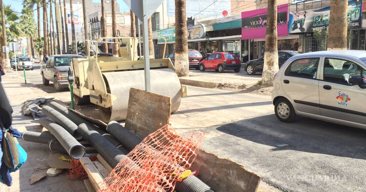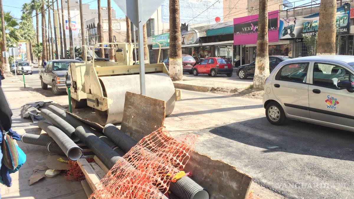 Es mediodía y en el tramo de la calle Rodríguez a la Cepeda, la maquinaria que llegó a remodelar la zona, está dormida. No hay un trabajador que ponga en marcha los trabajos y la calle luce como un tramo carretero que lleva a un rancho lejano. En la esquina, el establecimiento Chácharas y Juguetes, un lugar donde, antaño, la gente compraba artículos varios: desde cosas de mercería hasta juguetes simples como canicas y trompos. El lugar se quedó sin alma hace años. En la otra esquina, un enorme local abandonado con el letrero de “se vende o se renta” con un cerro de arena y piedra a la espera de ser utilizado para la obra. En contra esquina, un local donde antes era un negocio de Caja Popular mexicana, hoy está abandonado y pintarrajeado. También en renta. El cruce de Morelos y Rodríguez es el reflejo de una avenida que transitó de ser un paseo de la alta sociedad lagunera hace décadas, a una zona que busca encumbrarse pero que mantiene el letargo de un perro callejero que no quiere levantarse.